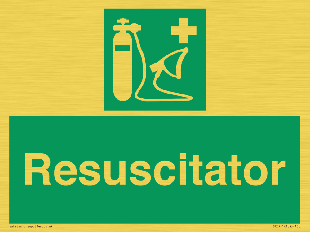 Sign Text: Resuscitator Dimensions: 200x150mm Material: Plastic Semi-rigid Gold Orientation: Landscape Text Colour: White Background Colour: Green More...