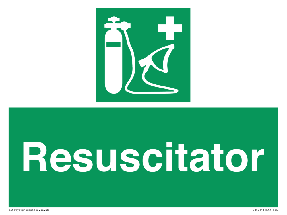 Sign Text: Resuscitator Dimensions: 200x150mm Material: Plastic Semi-rigid 1mm Orientation: Landscape Text Colour: White Background Colour: Green More...