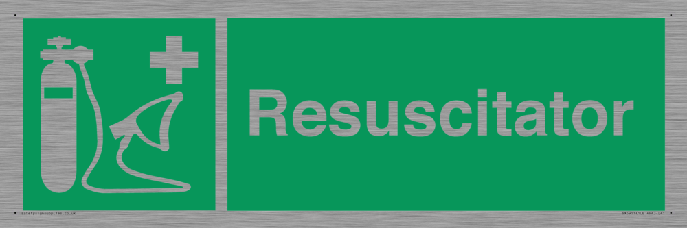 Sign Text: Resuscitator Dimensions: 450x150mm Material: Stainless Steel Text Colour: White Background Colour: Green Recommended Fixings: Comes with Self Adhesive More...