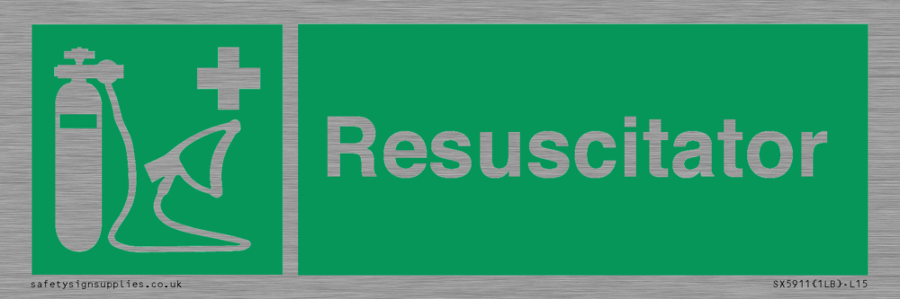 Sign Text: Resuscitator Dimensions: 150x50mm Material: Stainless Steel Text Colour: White Background Colour: Green Recommended Fixings: Comes with Self Adhesive More...