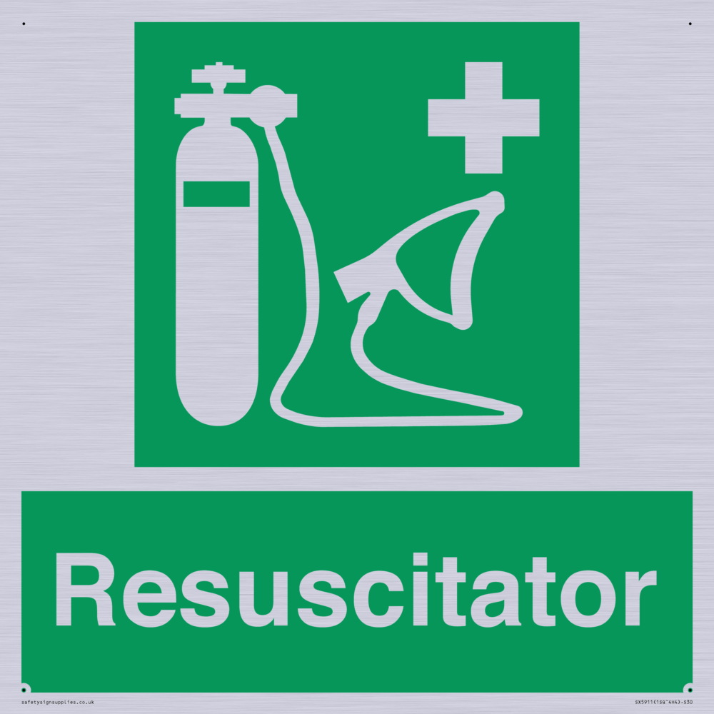 Sign Text: Resuscitator Dimensions: 300x300mm Material: Plastic Semi-rigid Silver Orientation: Square Text Colour: White Background Colour: Green More...