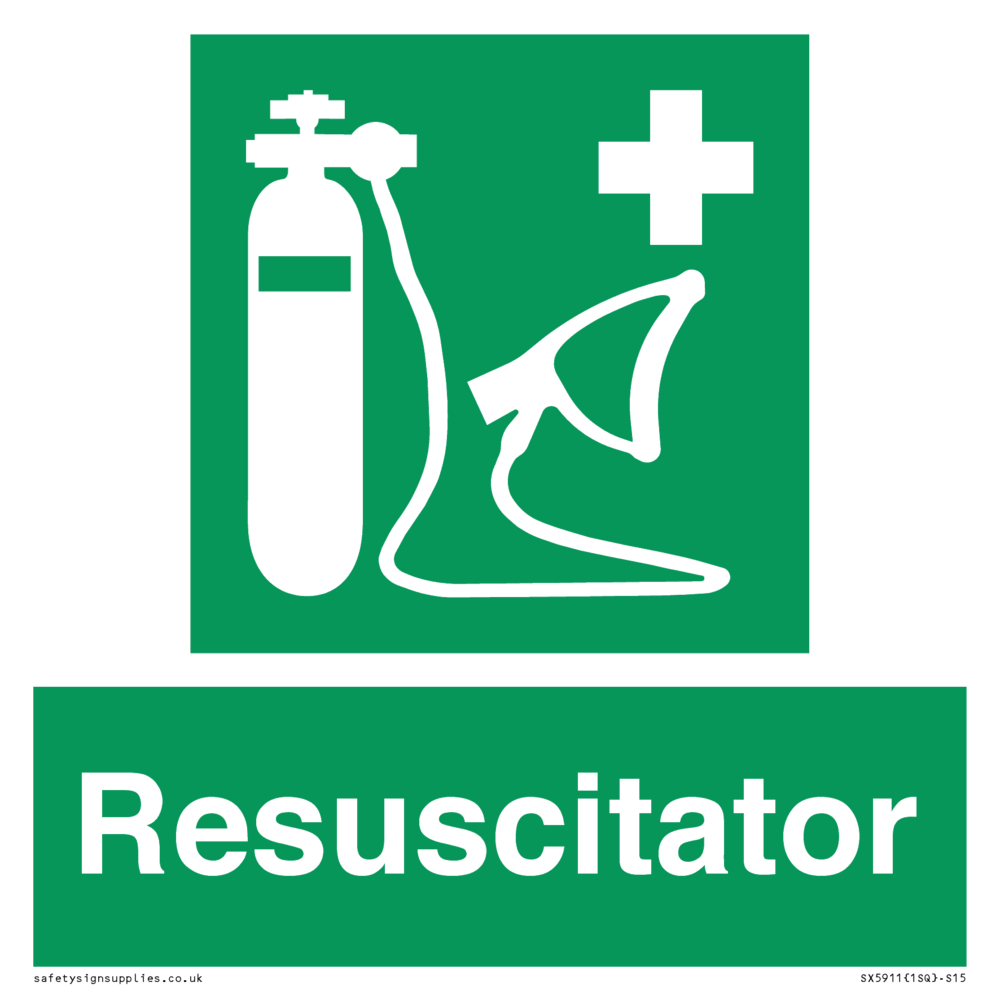 Sign Text: Resuscitator Dimensions: 150x150mm Material: Plastic Semi-rigid 1mm Orientation: Square Text Colour: White Background Colour: Green More...