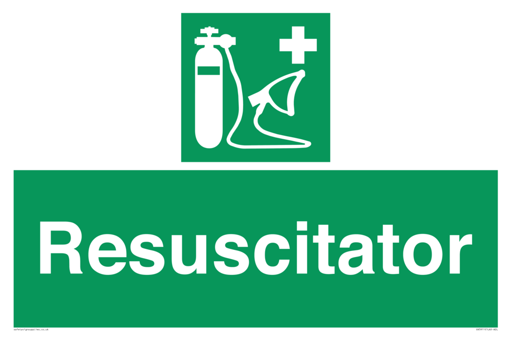 Sign Text: Resuscitator Dimensions: 600x400mm Material: Vinyl High Tack Orientation: Landscape Text Colour: White Background Colour: Green More...