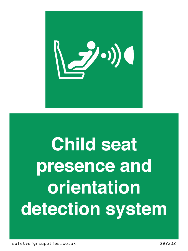 ISO 7010-E014 Safe Condition: Child seat presence and orientation detection system (CPOD)