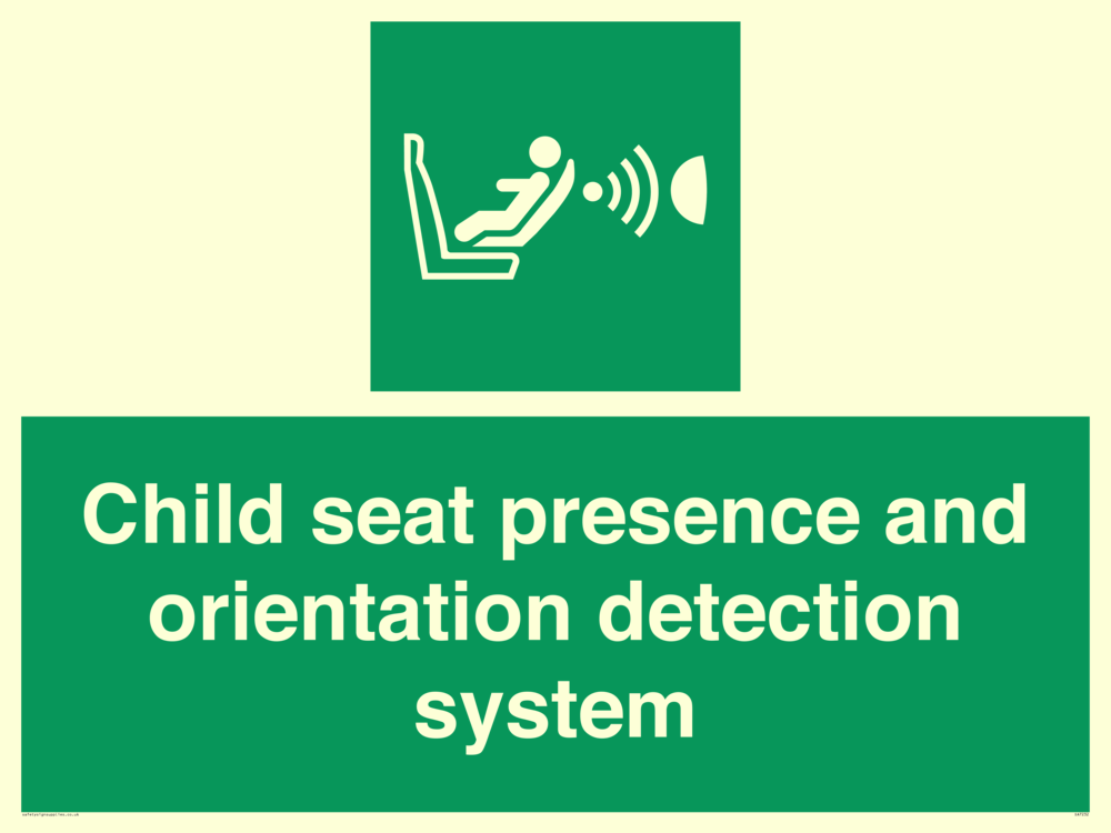 ISO 7010-E014 Safe Condition: Child seat presence and orientation detection system (CPOD)