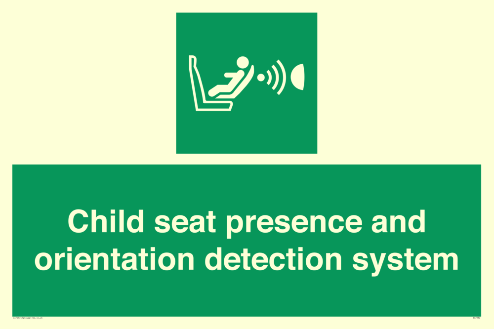 ISO 7010-E014 Safe Condition: Child seat presence and orientation detection system (CPOD)