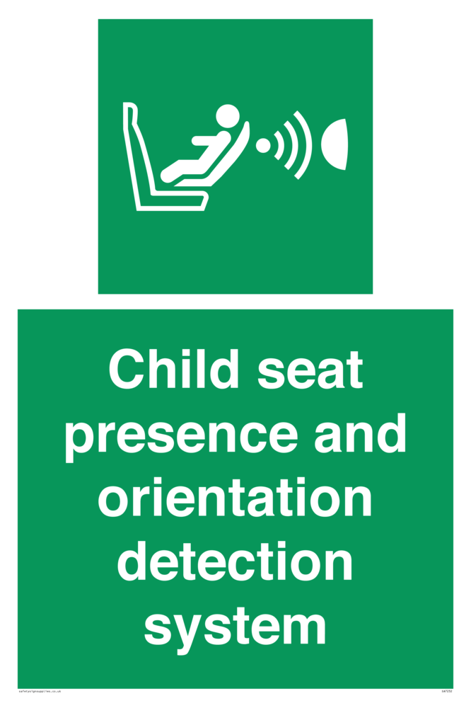 ISO 7010-E014 Safe Condition: Child seat presence and orientation detection system (CPOD)