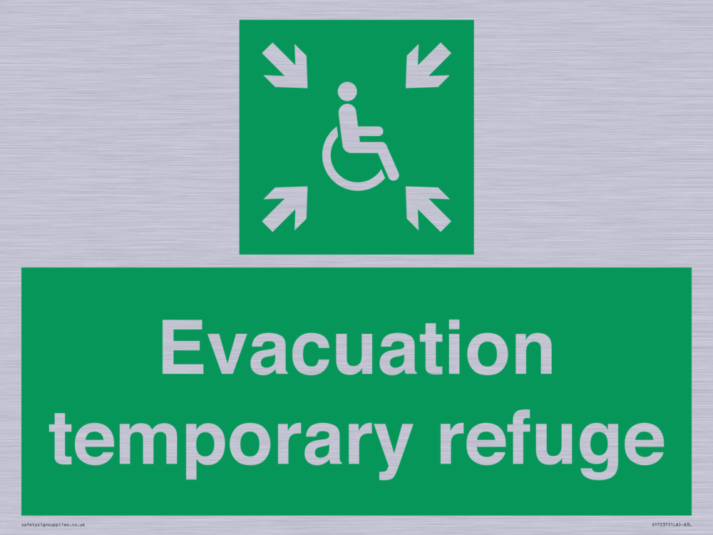 Function: To indicate the location of a temporary safe area (refuge) to await rescue assistance, provided for those unable to use stairs in the event of an evacuation.