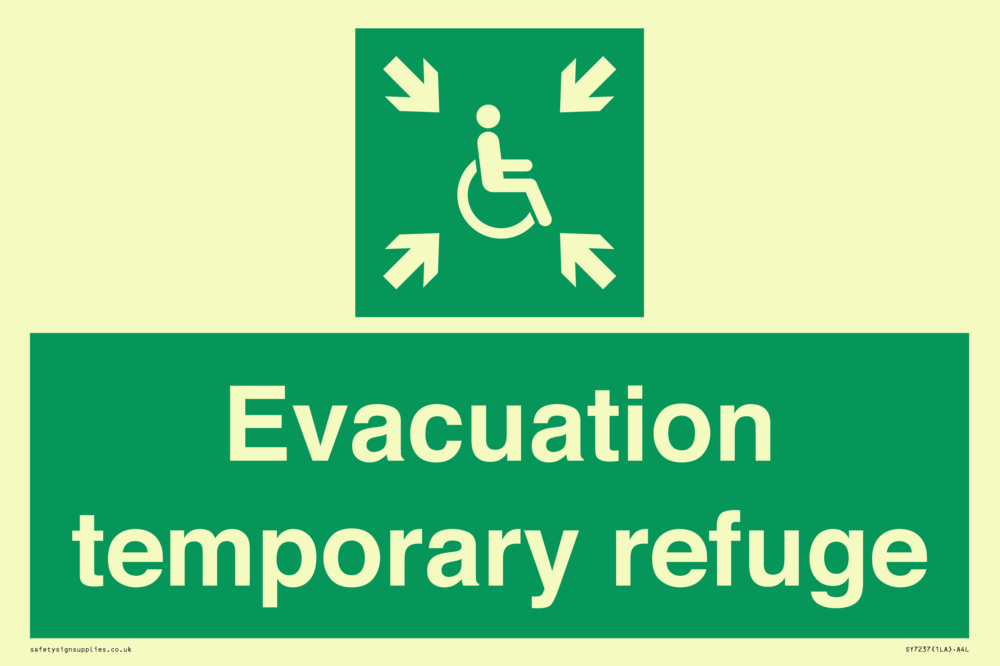 Sign Text: Evacuation temporary refuge
