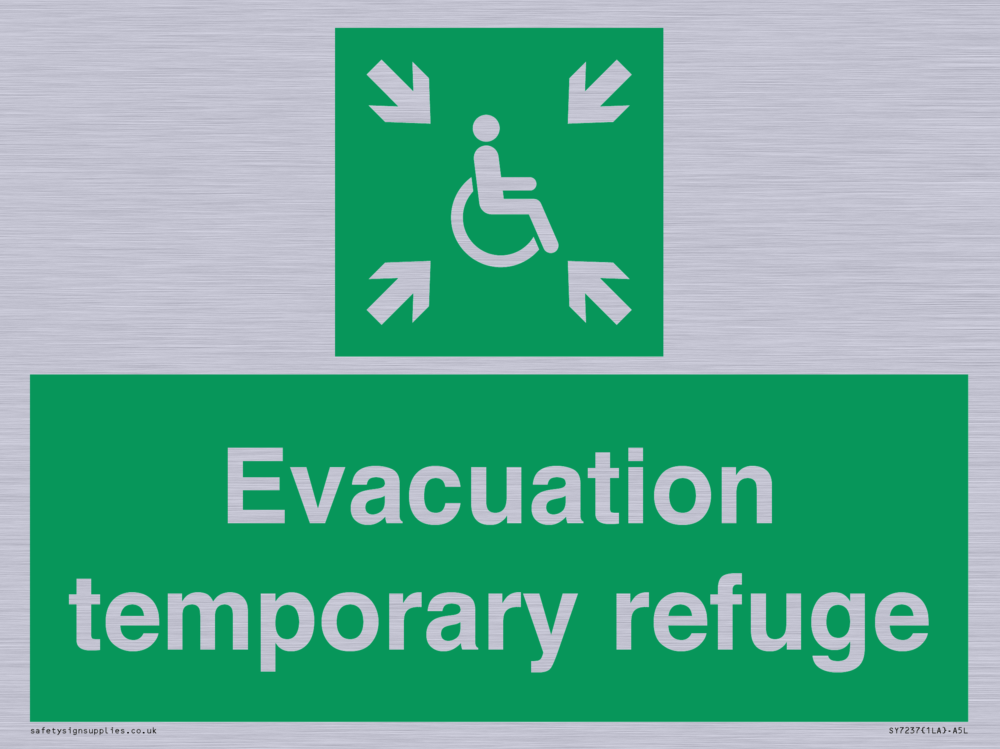Function: To indicate the location of a temporary safe area (refuge) to await rescue assistance, provided for those unable to use stairs in the event of an evacuation.