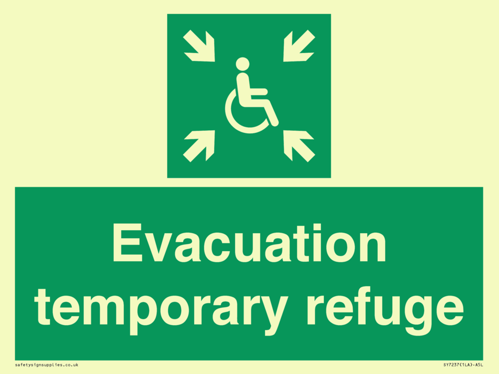 Sign Text: Evacuation temporary refuge