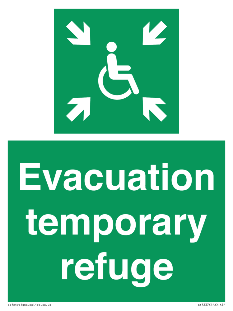 Sign Text: Evacuation temporary refuge