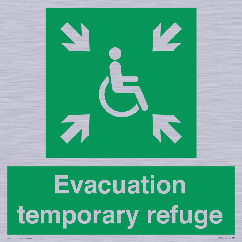 Function: To indicate the location of a temporary safe area (refuge) to await rescue assistance, provided for those unable to use stairs in the event of an evacuation.