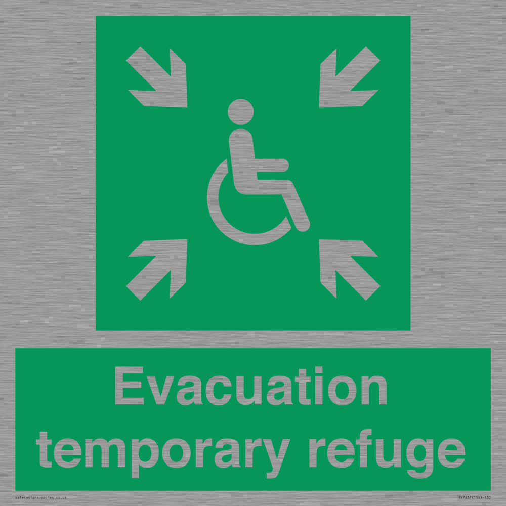 Function: To indicate the location of a temporary safe area (refuge) to await rescue assistance, provided for those unable to use stairs in the event of an evacuation.