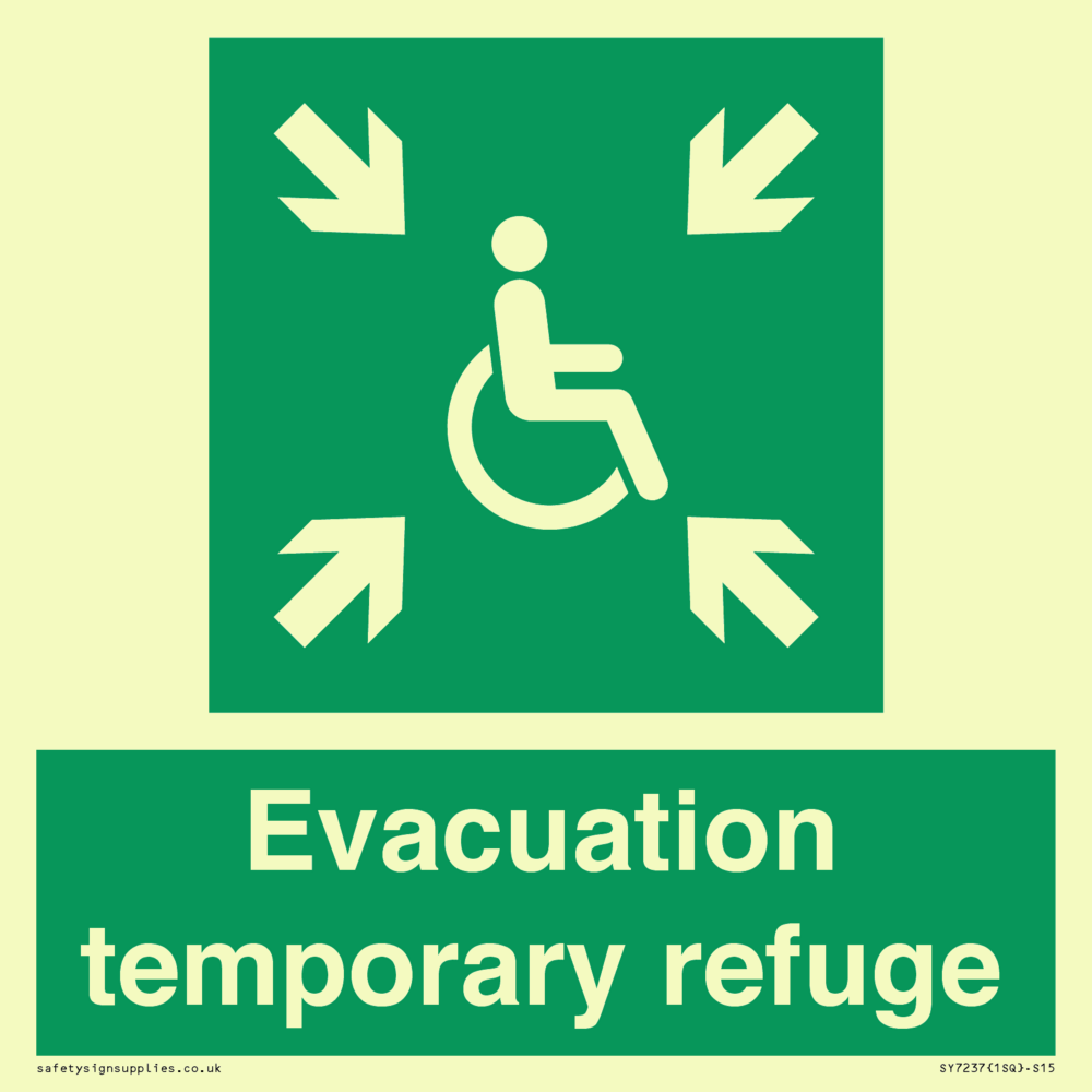 Sign Text: Evacuation temporary refuge