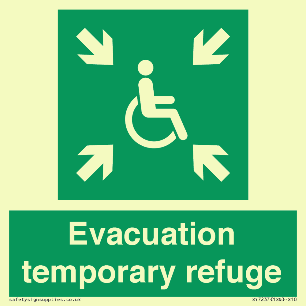 Sign Text: Evacuation temporary refuge