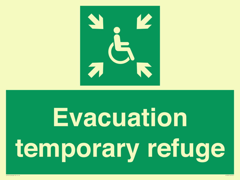 Function: To indicate the location of a temporary safe area (refuge) to await rescue assistance, provided for those unable to use stairs in the event of an evacuation.