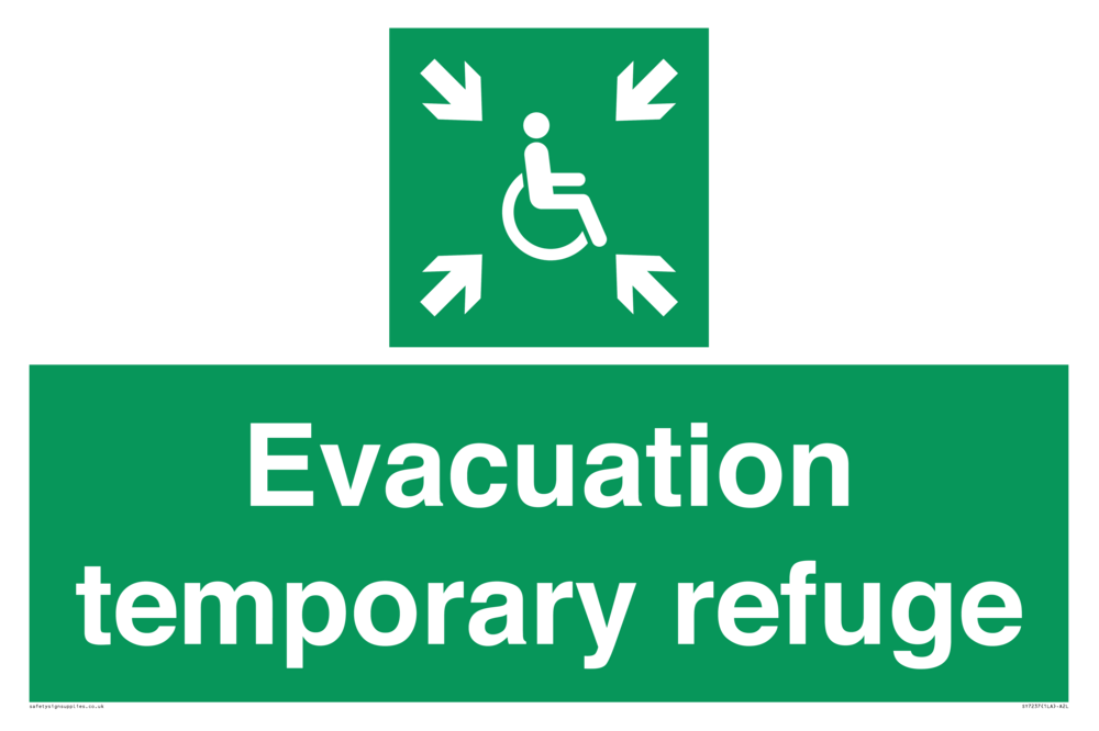 Function: To indicate the location of a temporary safe area (refuge) to await rescue assistance, provided for those unable to use stairs in the event of an evacuation.