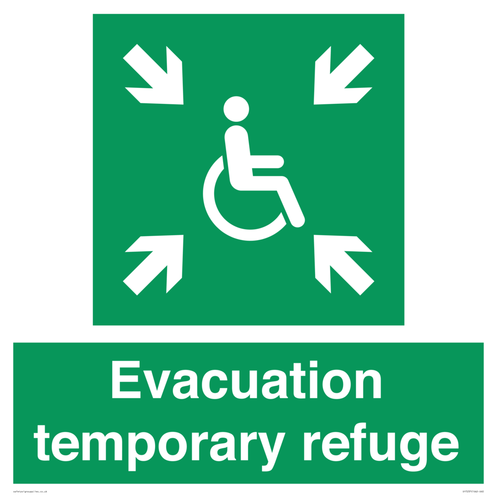 Sign Text: Evacuation temporary refuge