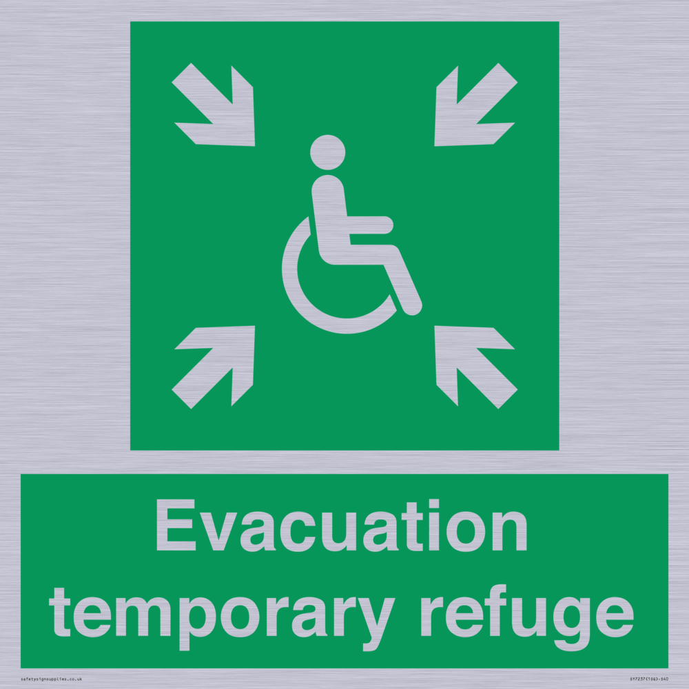 Function: To indicate the location of a temporary safe area (refuge) to await rescue assistance, provided for those unable to use stairs in the event of an evacuation.