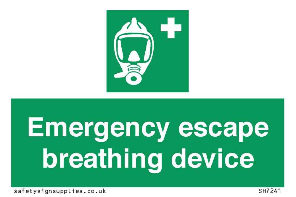 Sign Text: Emergency escape breathing device