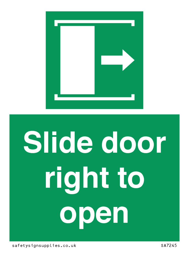 Sign Text: Slide door right to open