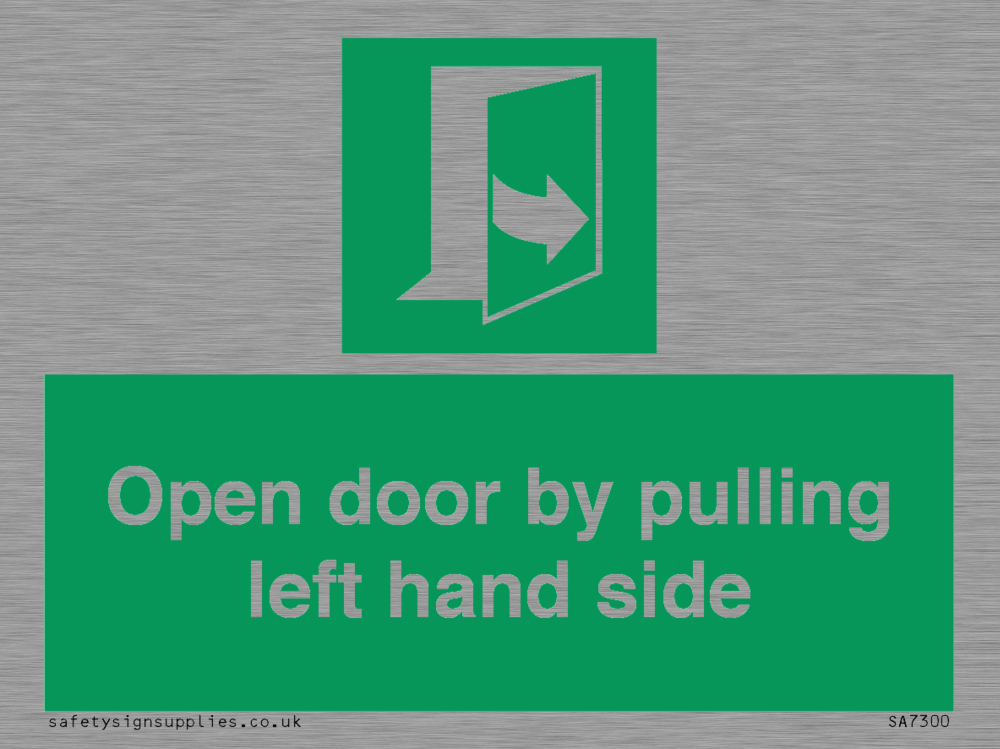 ISO 7010-E057 Safe condition: Door opens by pulling on the left-hand side