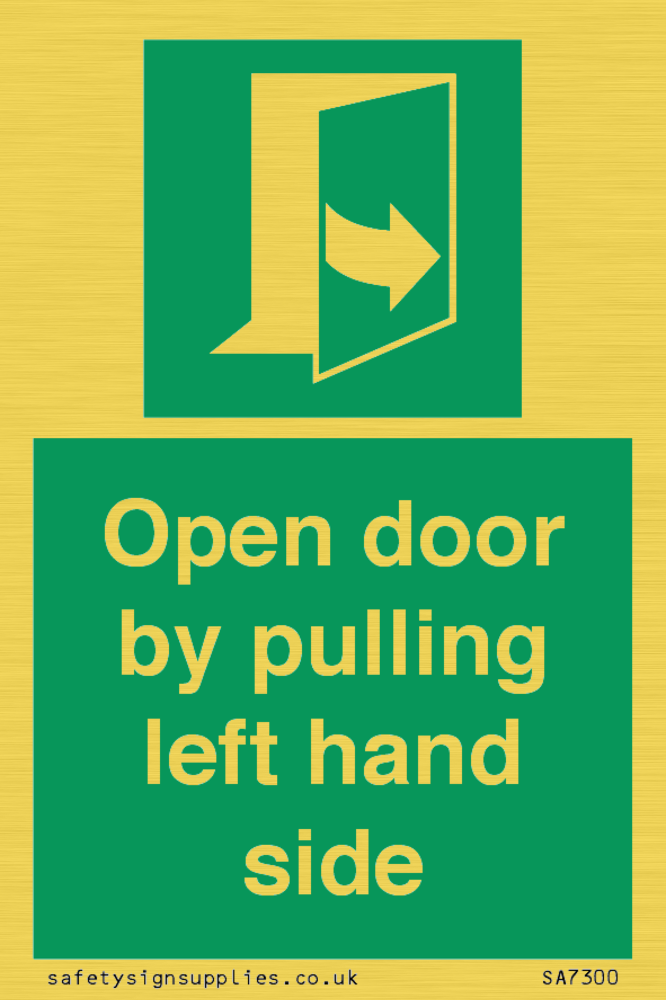 ISO 7010-E057 Safe condition: Door opens by pulling on the left-hand side