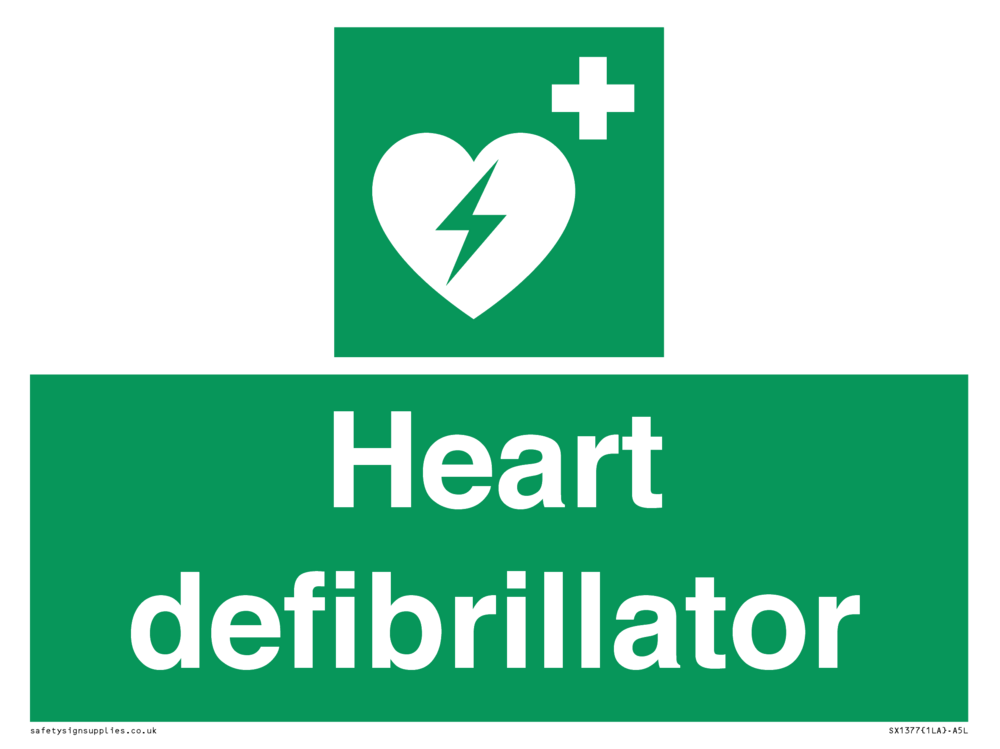 Sign Text: Heart defibrillator