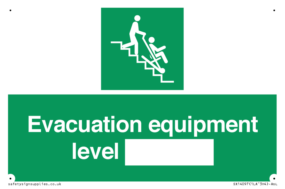 Sign Text: Evacuation equipment level ____