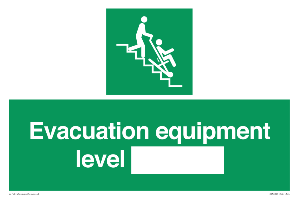 Sign Text: Evacuation equipment level ____