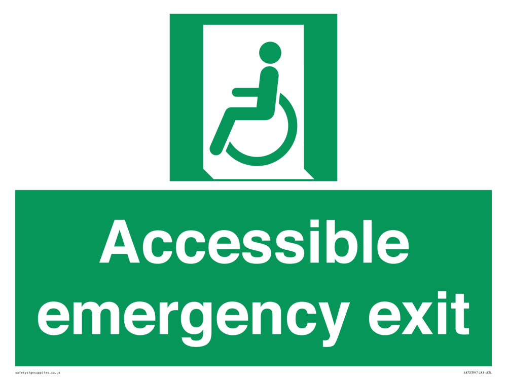 Function: To indicate an escape route to a place of safety usable by people unable to walk or with walking impairment.