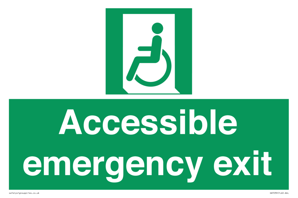 Function: To indicate an escape route to a place of safety usable by people unable to walk or with walking impairment.