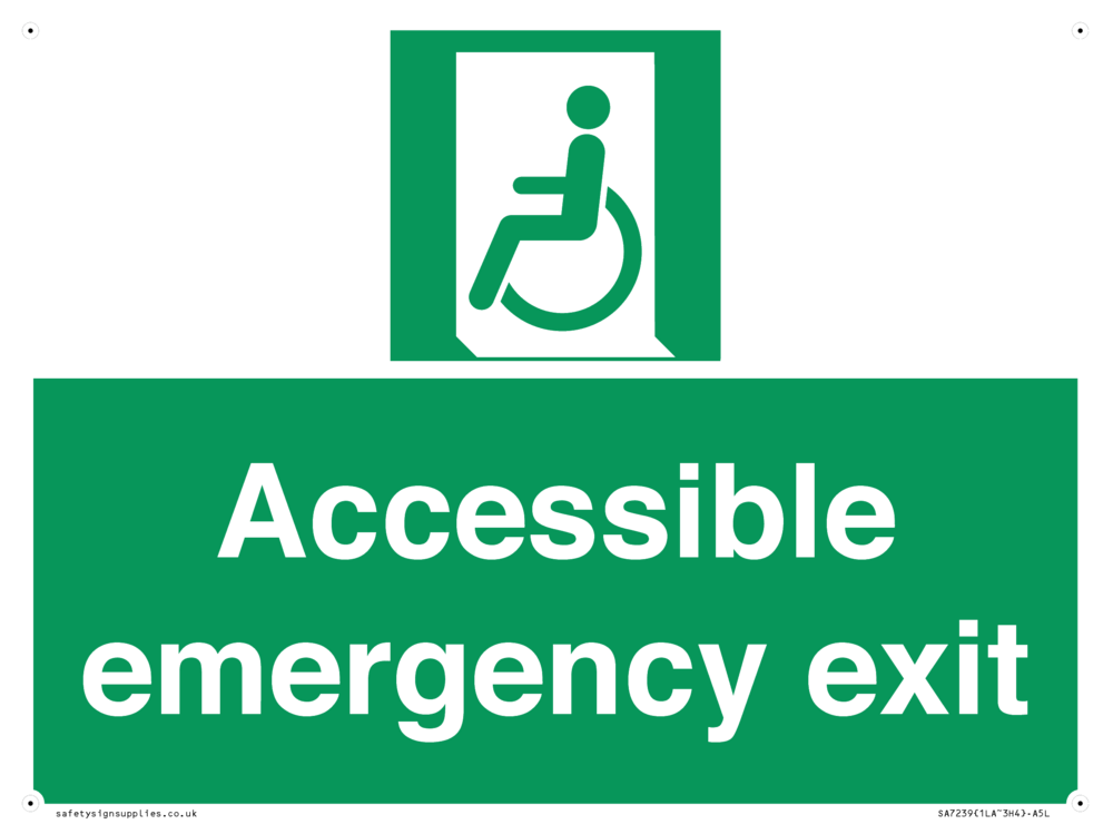 Function: To indicate an escape route to a place of safety usable by people unable to walk or with walking impairment.