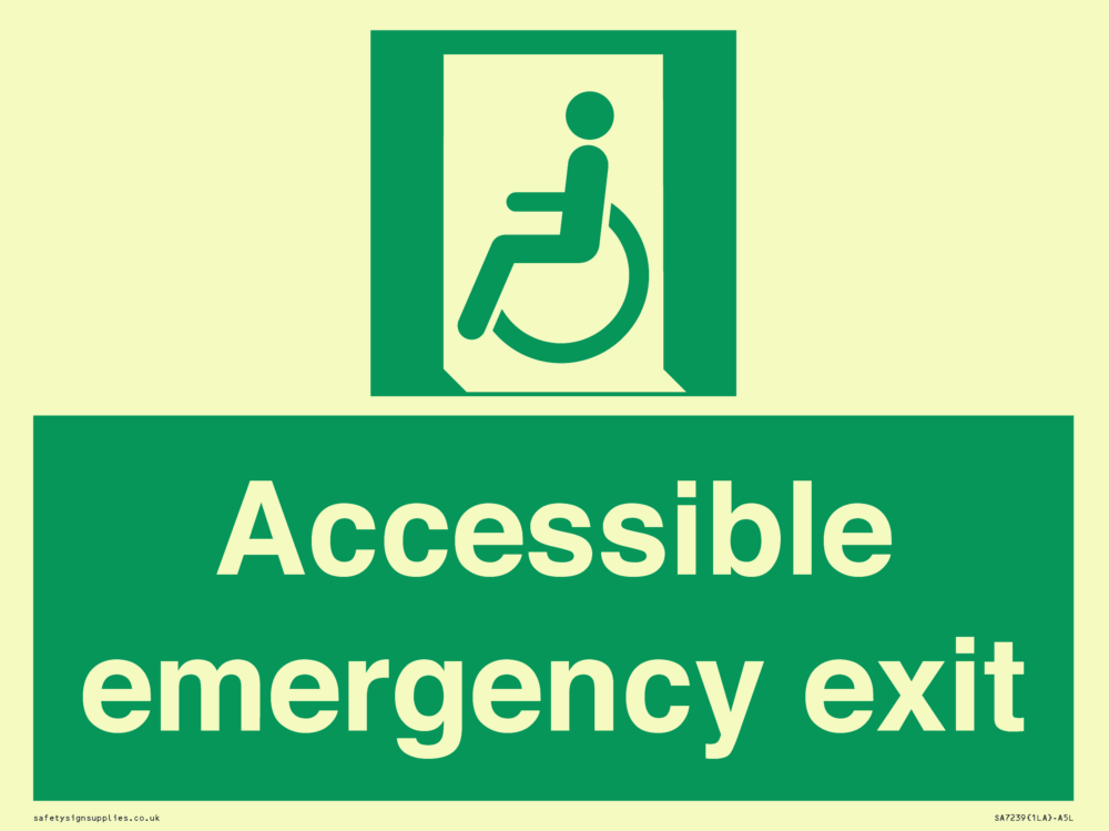 Function: To indicate an escape route to a place of safety usable by people unable to walk or with walking impairment.