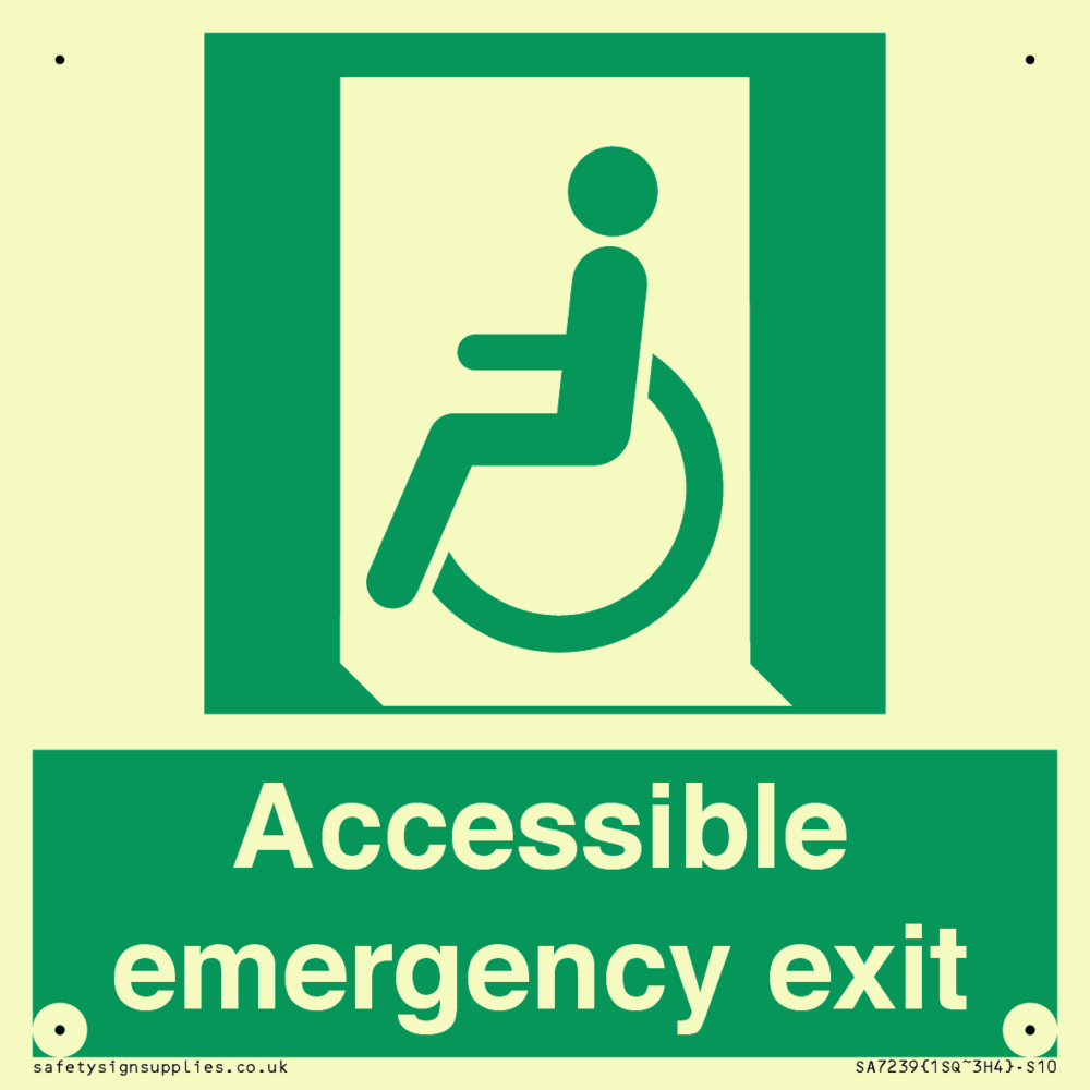 Function: To indicate an escape route to a place of safety usable by people unable to walk or with walking impairment.