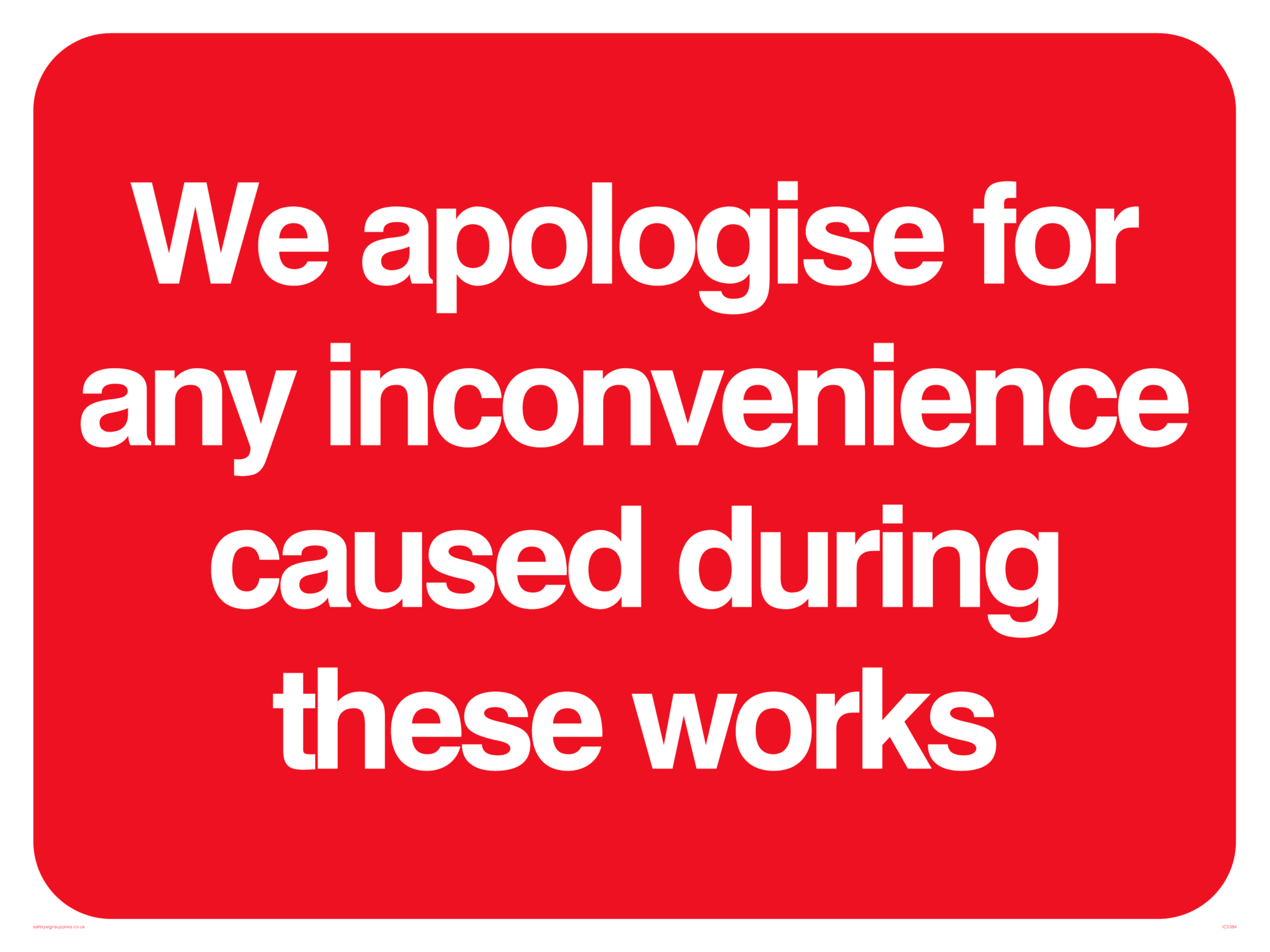 This sign contains no symbols, just white text on a red background. Comes with a self adhesive backing.