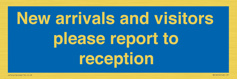 Sign Text: New arrivals and visitors please report to reception