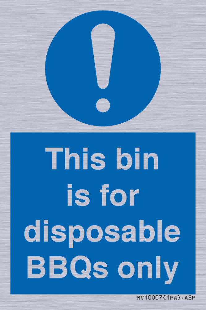 Sign Text: This bin is for disposable BBQs only