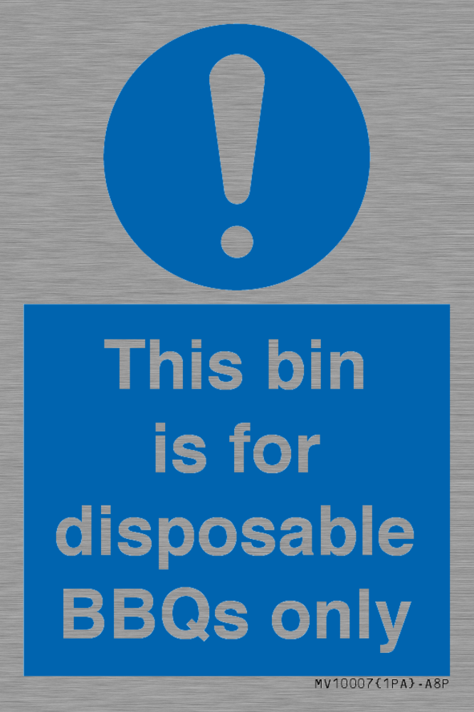 Sign Text: This bin is for disposable BBQs only
