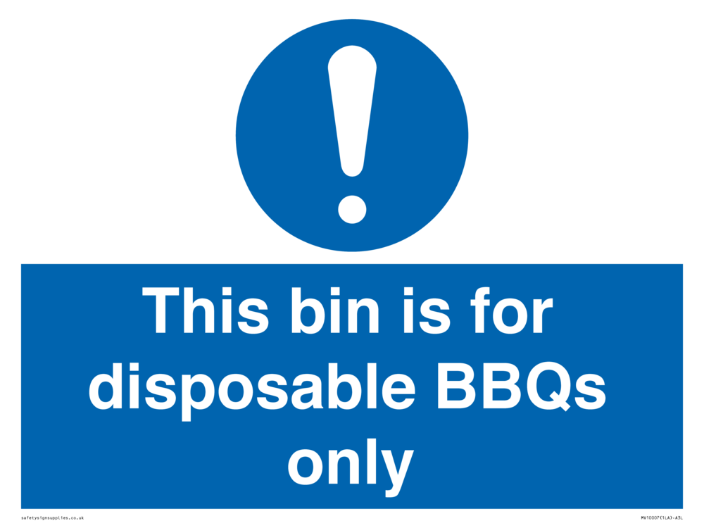 Sign Text: This bin is for disposable BBQs only