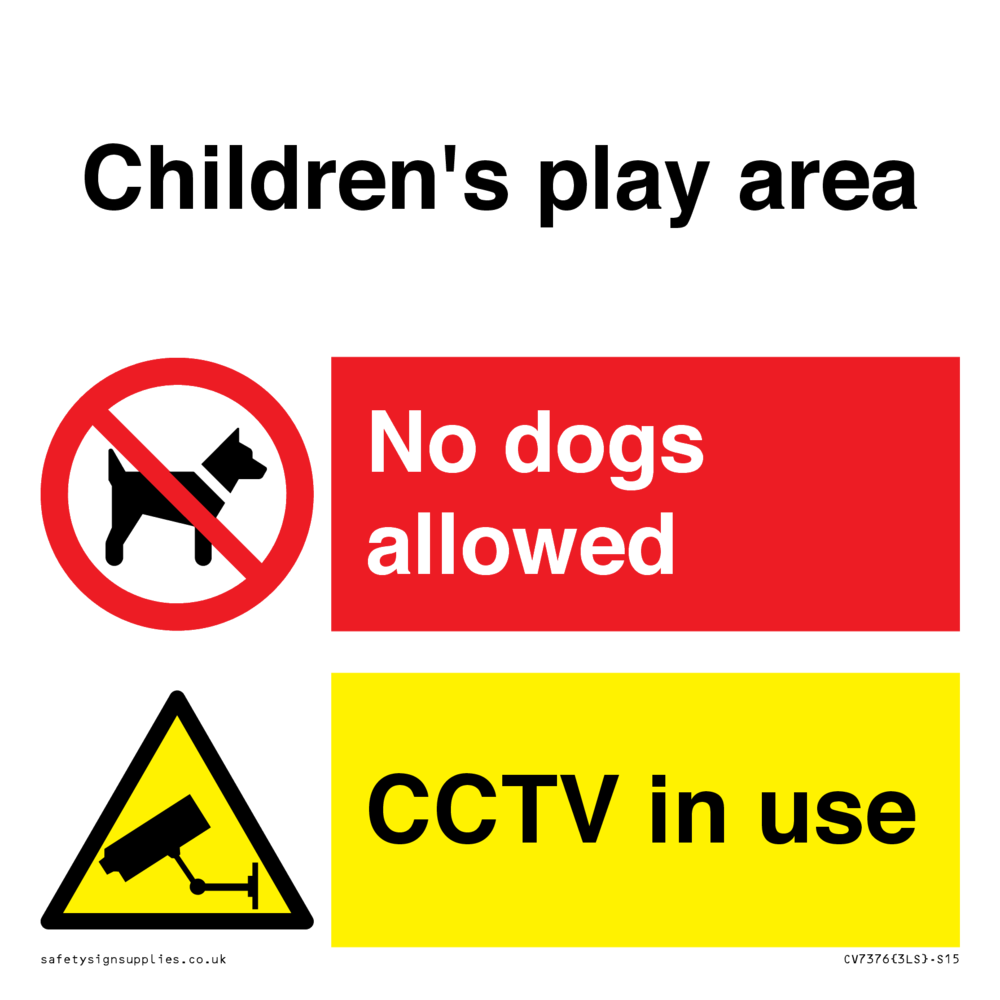Sign Text: Children's play area. No dogs allowed, CCTV in use