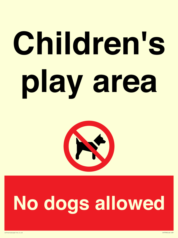 Sign Text: Children's play area. No dogs allowed