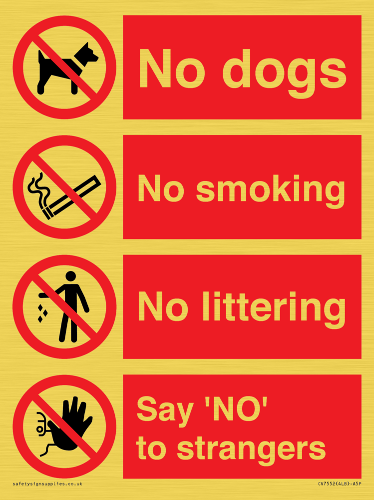 Sign Text: Playground Sign - No dogs, No smoking, No littering, Say 'NO' to strangers
