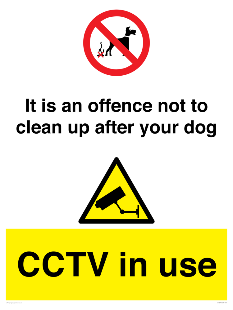 Sign Text: It is an offence not to clean up after your dog. CCTV in use