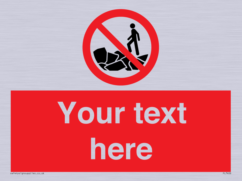 Suitable for hanging installation. Suitable for mounting on a flat surface. Suitable for mounting on a door. Custom signs contain the text required by the customer. With your your text and a standard safety sign symbol - a bespoke sign can fit any requirement.
