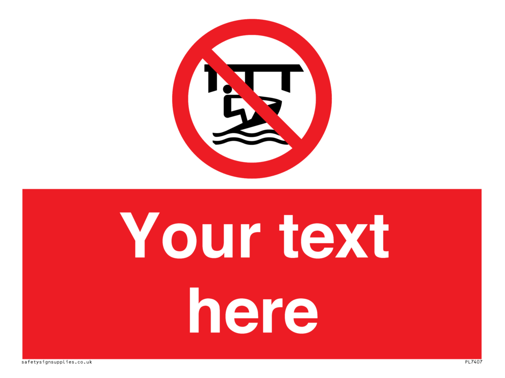 Suitable for mounting on a flat surface. Suitable for mounting on a door. Suitable for mounting on cladding. This product is design to be mounted on the ceiling. Custom signs contain the text required by the customer. With your your text and a standard safety sign symbol - a bespoke sign can fit any requirement.