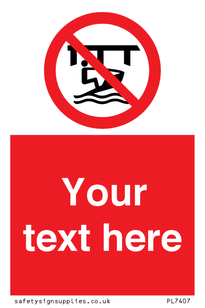Suitable for mounting on a door. Suitable for mounting on cladding. This product is design to be mounted on the ceiling. Custom signs contain the text required by the customer. With your your text and a standard safety sign symbol - a bespoke sign can fit any requirement.