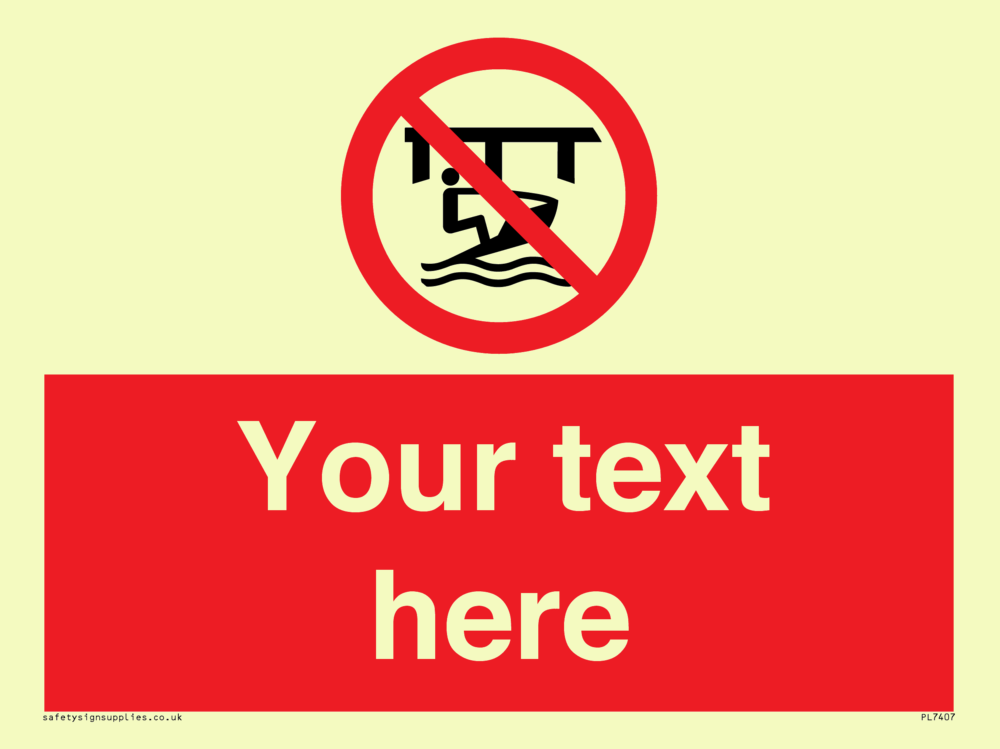 Suitable for mounting on a door. Suitable for mounting on cladding. This product is design to be mounted on the ceiling. Custom signs contain the text required by the customer. With your your text and a standard safety sign symbol - a bespoke sign can fit any requirement.