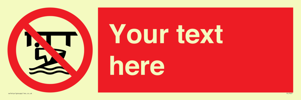 Suitable for mounting on a door. Suitable for mounting on cladding. This product is design to be mounted on the ceiling. Custom signs contain the text required by the customer. With your your text and a standard safety sign symbol - a bespoke sign can fit any requirement.